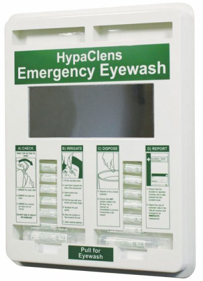 • The HypaClens 20ml Eye Wash Dispenser is a wall mounted eye wash dispenser which ensures that in the event of an emergency eye wash is easily located.