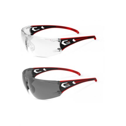 • Ergonomic temple for comfort fit. • Temple tip locking catch. • Temple ratchet adjustment. • Hard coated polycarbonate lens.