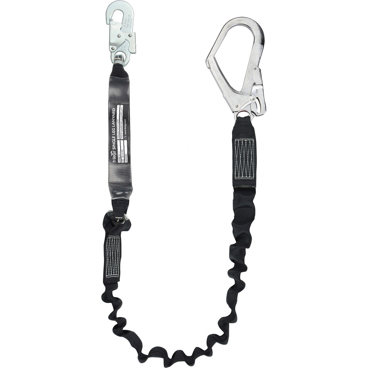 The EL1 is a 1.8meter Elasticated lanyard with a quick clip connector to attach to the users EN361 harness and SCAF1 scaffold hook to attach to the anchoring point. The elasticated webbing compacts the lanyard to 1.5meters when not fully extended reducing the risk of tangling or catching. When extended the lanyard is 1.8 meters in length. The Quick clip connector makes attaching to the harness much easier. The Shock absorber is intended to reduce the force applied to the user in the event of a fall. Must be used as part of a fall arrest system.