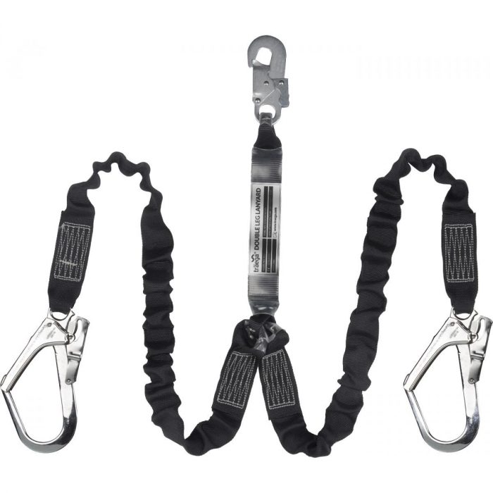 1.8m Twin leg webbing lanyard with shock absorber, carabiner and scaffold hook